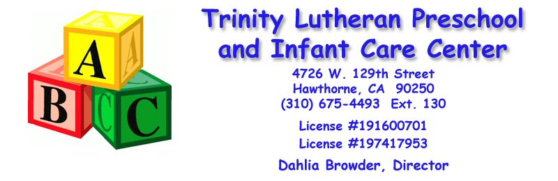 We pray that your experience with Trinity Lutheran Preschool will be beneficial to your child, your family, and your future as servants of God, in the nation he has given us. Trinity Lutheran Preschool exists because our Lord Jesus Christ has commanded His people to go forth and make disciples by baptizing and teaching. Our Preschool is one of the arms of Trinity Lutheran Church in caring out the teaching portion of the Lord's command.